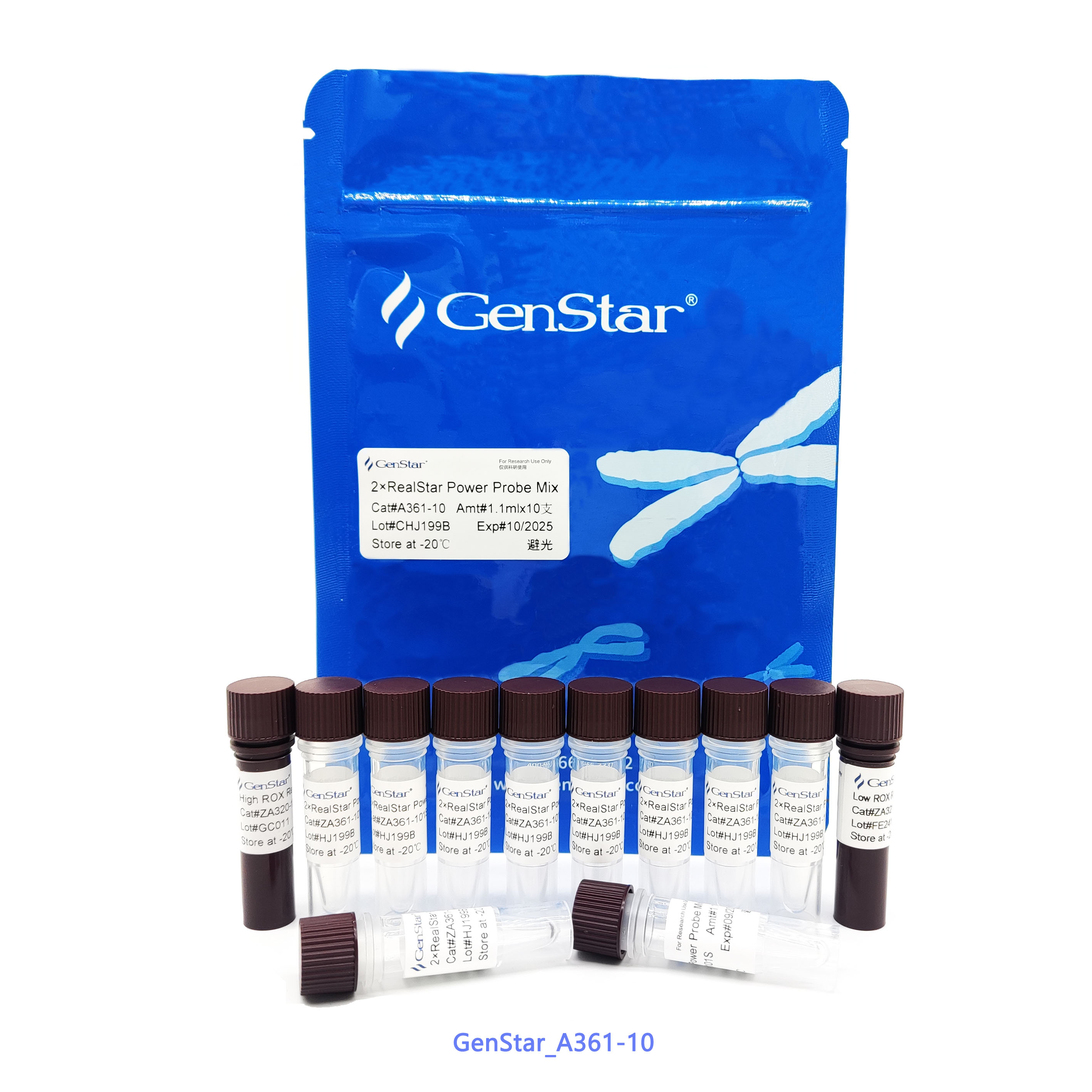 本產(chǎn)品是專用于探針法(TaqMan,Molecular Beacon 等)實(shí)時(shí)熒光定量的預(yù)混體系。產(chǎn)品含有優(yōu)化濃度的 GenStar Power HSTaq DNA Polymerase、dNTPs、Mg2+、反應(yīng)緩沖液和穩(wěn)定劑等成分。Power HSTaq DNA Polymerase 在 75℃ 以下沒有活性,從而有效避免在常溫條件下由引物和模板非特異性結(jié)合或引物二聚體而產(chǎn)生的非特異性擴(kuò)增,酶的激活需要 95℃ 孵育 10 min。反應(yīng)體系可在室溫下配制,無(wú)需在冰上完成,操作方便。主要用于基因組 DNA 靶序列和 RNA 反轉(zhuǎn)錄后 cDNA 靶序列的檢測(cè),如基因表達(dá)分析、拷貝數(shù)分析、SNP 基因型分析等,適用于不同類型探針法熒光定量 PCR。
