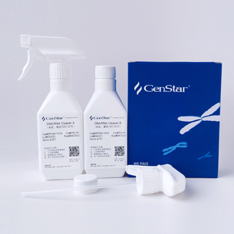 核酸(DNA/RNA)懸深顆粒,即氣溶膠污染物是導(dǎo)致 PCR 結(jié)果的假陽性原因之一。在分子生物學(xué)實驗室中,核酸污染的清除是保證實驗準(zhǔn)確性的有效措施。本產(chǎn)品由兩種單獨(dú)使用沒有毒性的溶液組成,混合后產(chǎn)生活性氧自由基,實現(xiàn)對核酸片段氧化降解,清除核酸(DNA/RNA)懸浮顆粒及物體表面核酸污染。本產(chǎn)品適用于生物實驗室的清潔,通過對超凈臺面、實驗墻面、移液槍外殼等污染累積的地方進(jìn)行噴涂擦拭,在短時間內(nèi)消除各種操作表面的高水平 DNA 及 RNA 污染,清除氣溶膠污染,消除細(xì)菌或病毒類污染。