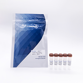 本產(chǎn)品是采用 SYBR Green I 嵌合熒光法進行實時熒光定量 PCR 的專用 2× 濃度預(yù)混液。本產(chǎn)品含有優(yōu)化濃度的 GenStar Fast HSTaq DNA Polymerase、SYBR Green I、dNTPs、Mg2+、反應(yīng)緩沖液和穩(wěn)定劑等成分。主要用于基因組 DNA 靶序列和 RNA 反轉(zhuǎn)錄后 cDNA 靶序列的檢測。GenStar Fast HSTaq DNA Polymerase 高溫加熱前,抗 Taq 單克隆抗體與 Taq 結(jié)合, 抑制 Taq 的聚合酶活性,從而抑制在低溫條件下出現(xiàn)的由引物和模板 DNA 非特異性雜交或引物二聚體引起的非特異性擴增。 抗體在 PCR 反應(yīng)的預(yù)變性步驟中已完全失活,不會阻礙之后 Taq 酶聚合反應(yīng),大大提高了 PCR 反應(yīng)的靈敏度及特異性。 優(yōu)化濃度的 SYBR Green I 熒光染料摻入 DNA 雙鏈后,熒光信號增強,而不摻入鏈中 SYBR Green I 染料分子熒光信號不變, 從而保證熒光信號的增加與 PCR 產(chǎn)物的增加完全同步,熒光可以在退火或延伸階段測定。