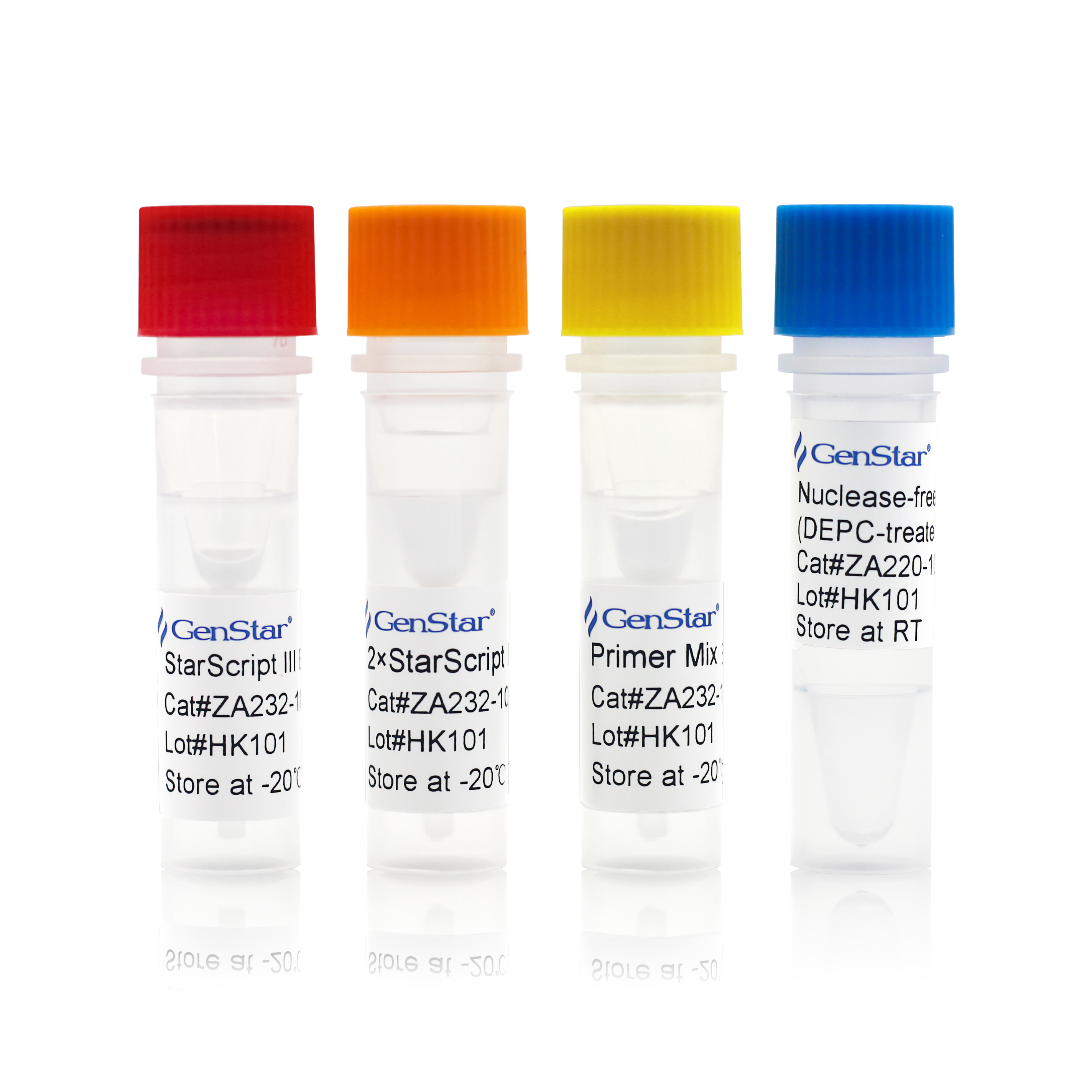 本試劑盒基于 StarScript III 反轉(zhuǎn)錄酶開發(fā)的 cDNA 第一鏈合成試劑盒。其中 StarScript III 反轉(zhuǎn)錄酶比 StarScript II 反轉(zhuǎn)錄酶具有更高的熱穩(wěn)定性,對于復雜二級結(jié)構(gòu)和 GC 含量高的 RNA 模板,可將逆轉(zhuǎn)錄溫度提高至 55-60℃,克服 RNA 復雜二級結(jié)構(gòu)對 cDNA 合成的抑制,有效合成高質(zhì)量 cDNA;StarScript III 反轉(zhuǎn)錄酶 cDNA 合成能力更高,非常適合少量模板以及低拷貝基因的逆轉(zhuǎn)錄。