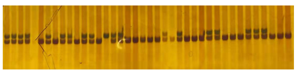 以水稻嫩葉裂解液為模板,使用 A008 進(jìn)行 PCR 擴(kuò)增,結(jié)果顯示 A008 擴(kuò)增產(chǎn)物適用于 PAGE 凝膠電泳且有效完成基因分型。