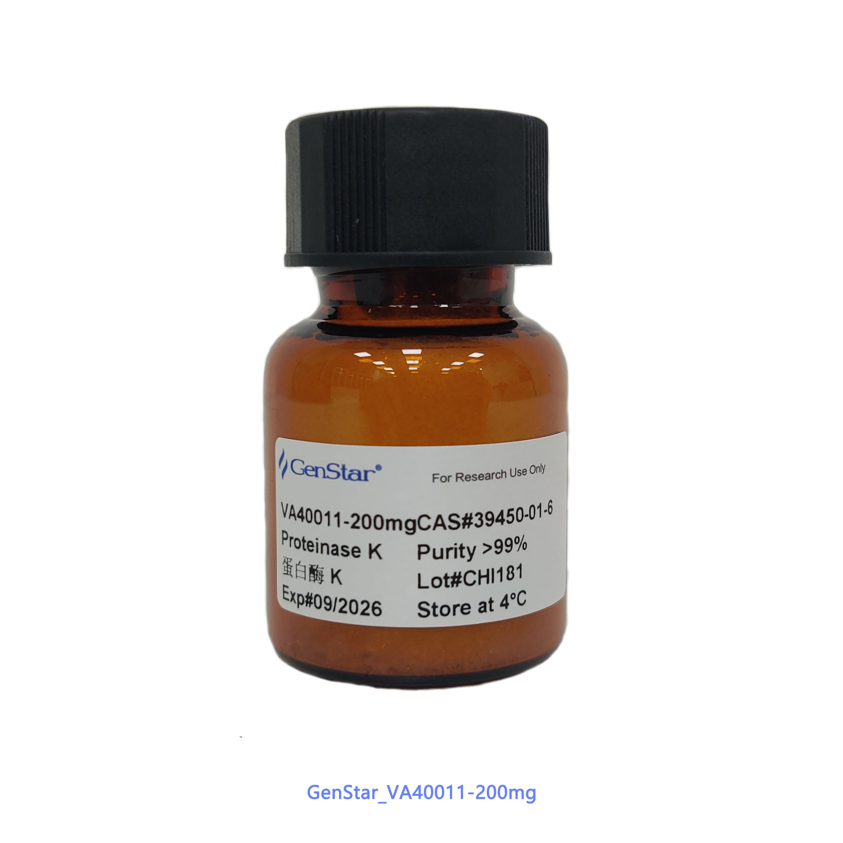 Proteinase K(蛋白酶 K)是一種廣譜的、高活性絲氨酸蛋白酶,其活性受 pH 值、高溫、EDTA、去垢劑和尿素等因素的影 響較小,因而被廣泛應用于核酸提取和純化時促進細胞裂解、去除蛋白質(zhì)污染,蛋白結(jié)構(gòu)和功能分析,也可用于酶促反應后, 酶的消化去除等。