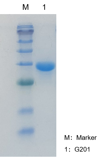 GenStar #G201 SDS-PAGE電泳結(jié)果顯示,除酶蛋白外無(wú)其它雜帶,純度>95%。