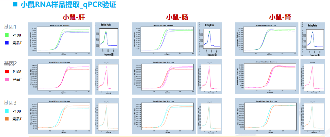 P108 提取的 RNA,經(jīng) qPCR 驗(yàn)證,其 CT 值較競品 T 更小,RNA 質(zhì)量更理想。