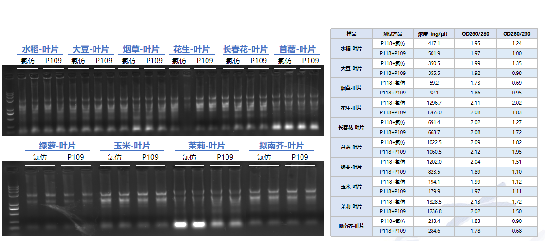 P108 采用 TRIGene +氯仿替代物,對于多種不同植物類型,其提取效果與使用氯仿的相當(dāng),可在 RNA 抽提時(shí),代替氯仿使用。