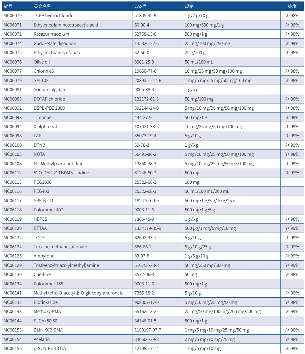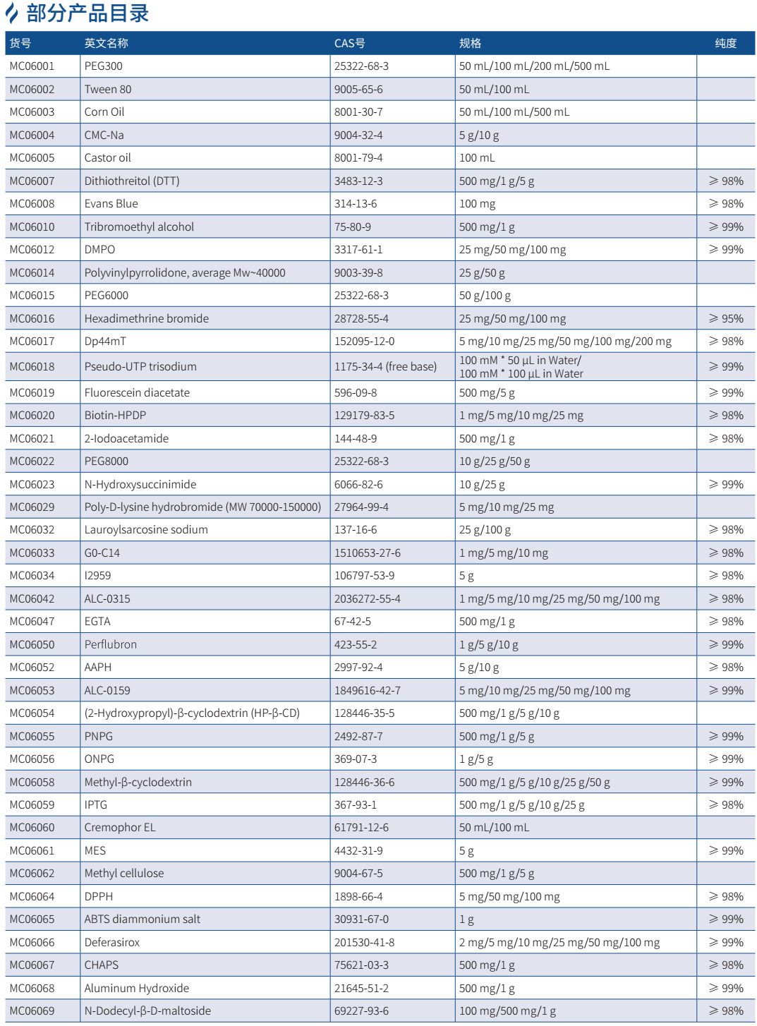 本界面只顯示部分產(chǎn)品信息,若想獲取更多小分子系列產(chǎn)品信息,請(qǐng)聯(lián)系我們銷售或致電技術(shù)支持熱線:400-666-3332