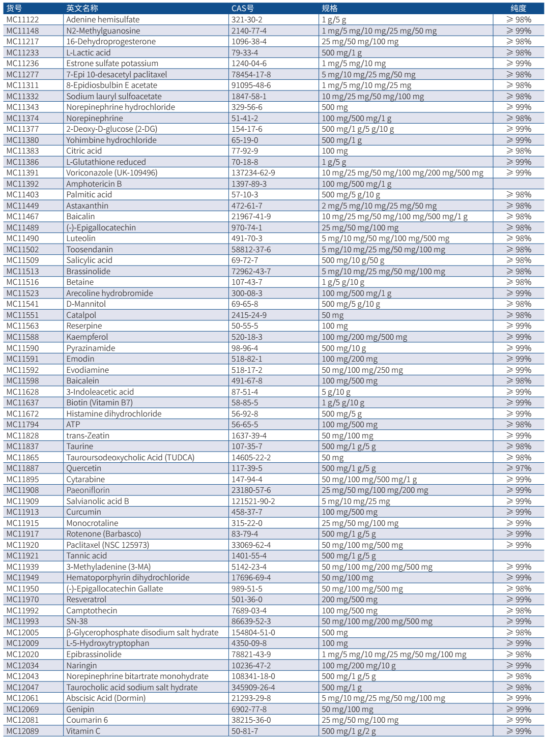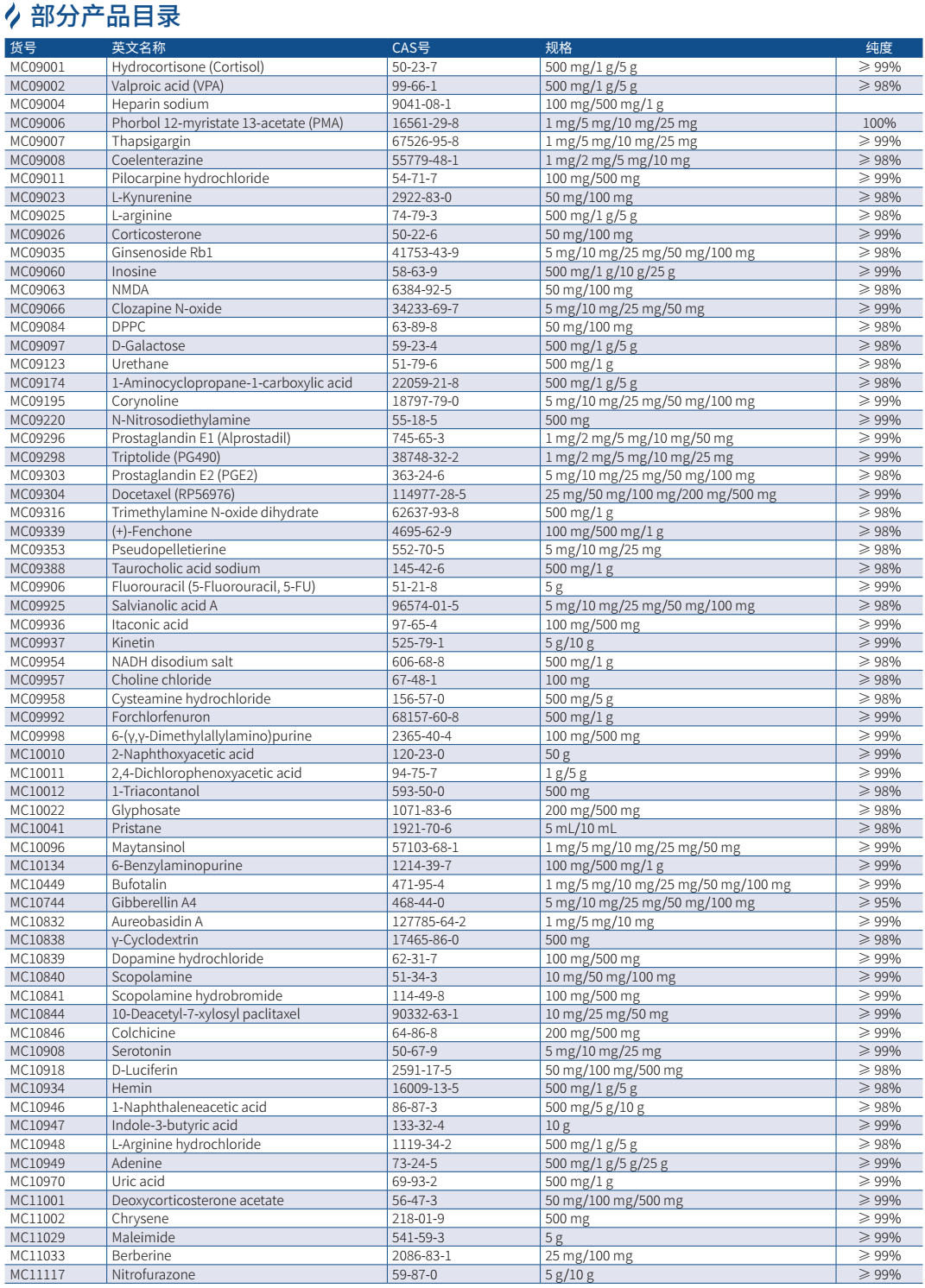 本界面只顯示部分產(chǎn)品信息,若想獲取更多小分子系列產(chǎn)品信息,請聯(lián)系我們銷售或致電技術支持熱線:400-666-3332